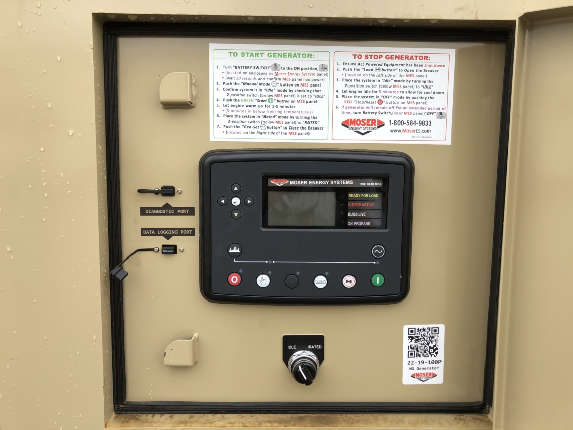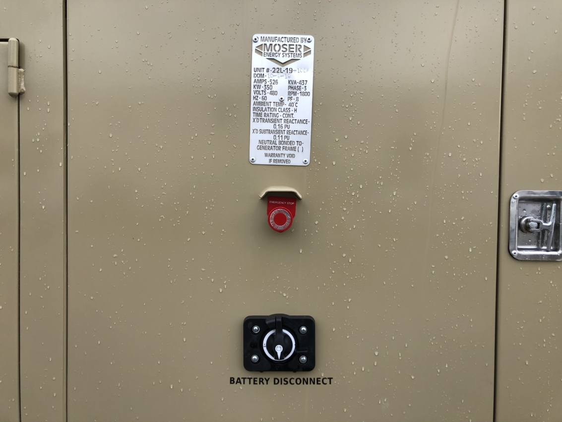 Package Manufacturer: Moser Energy SystemsPackage Model: M350Control Panel: DSE8610Circuit Breaker Size: 600Enclosure: Factory EnclosureEnclosure Type: Sound Attenuated EnclosedParalleling Controls: ✓Electrically Operated Breaker: ✓Shunt Trip: ✓