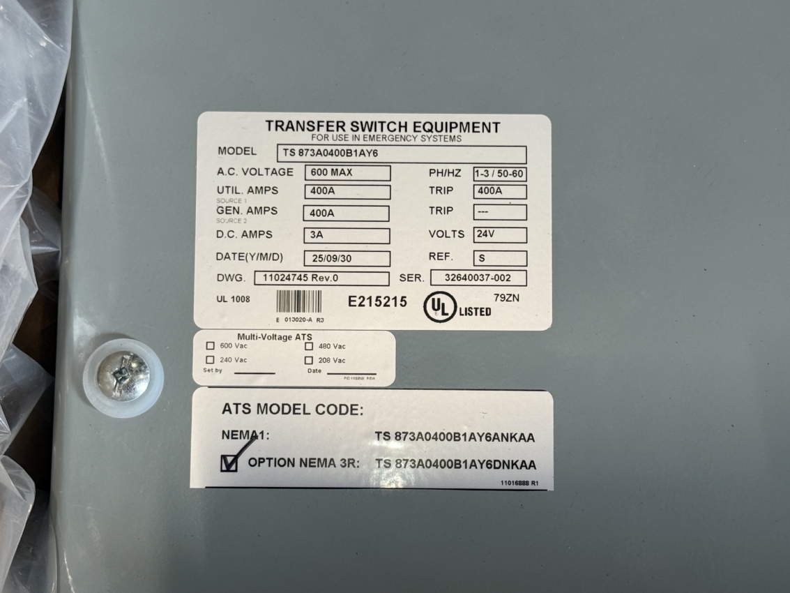 • ATS Enclosure_Type: NEMA 3R