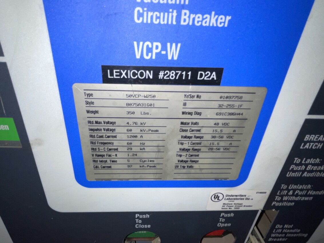 50VCP-W250 1200 Amp Cutler-Hamer Vacuum Circuit Breaker