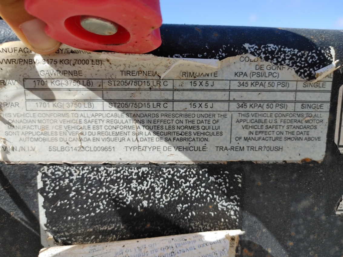 The trailer is rated for a gross vehicle weight of 7,000 lbs and has a maximum cargo load of 6,020 lbs.