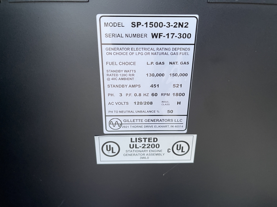 Gillette SP-1500-3-2 Natural Gas Generator Set - 150 kW