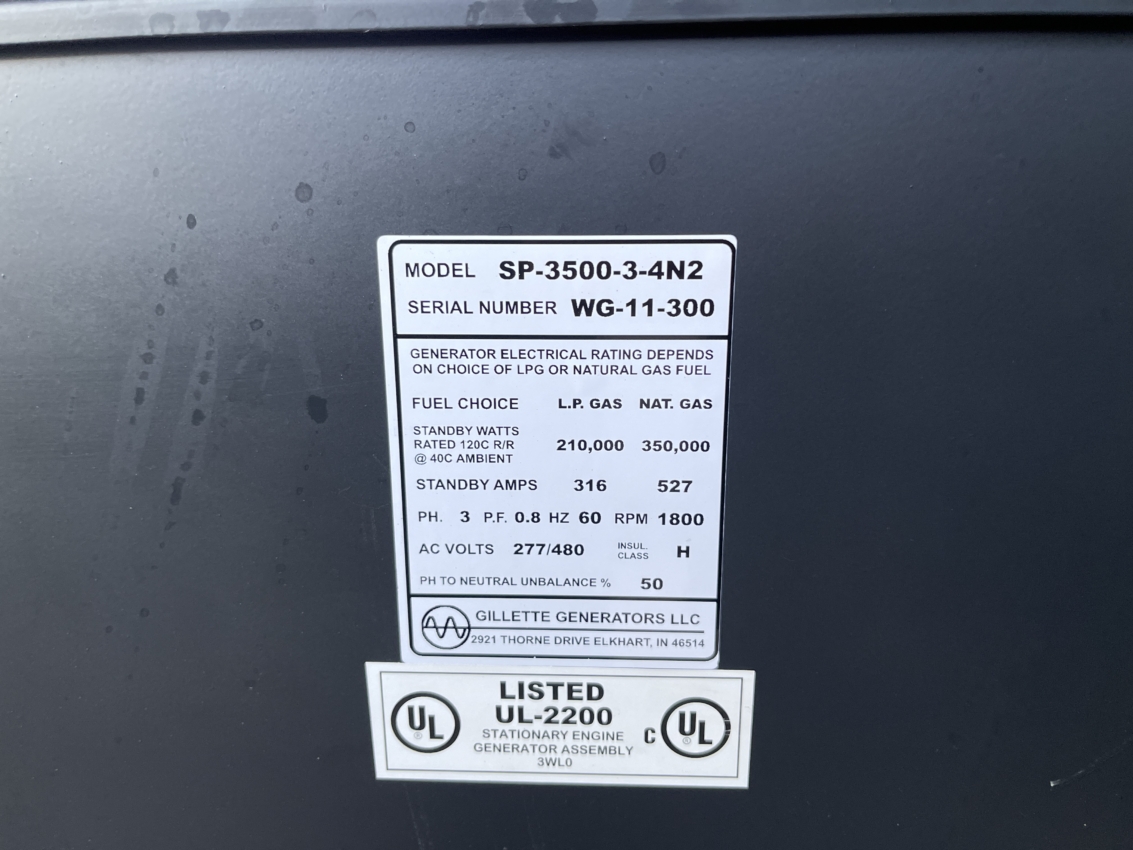 Gillette SP-3500-3-4N2 Natural Gas Generator Set - 350 kW