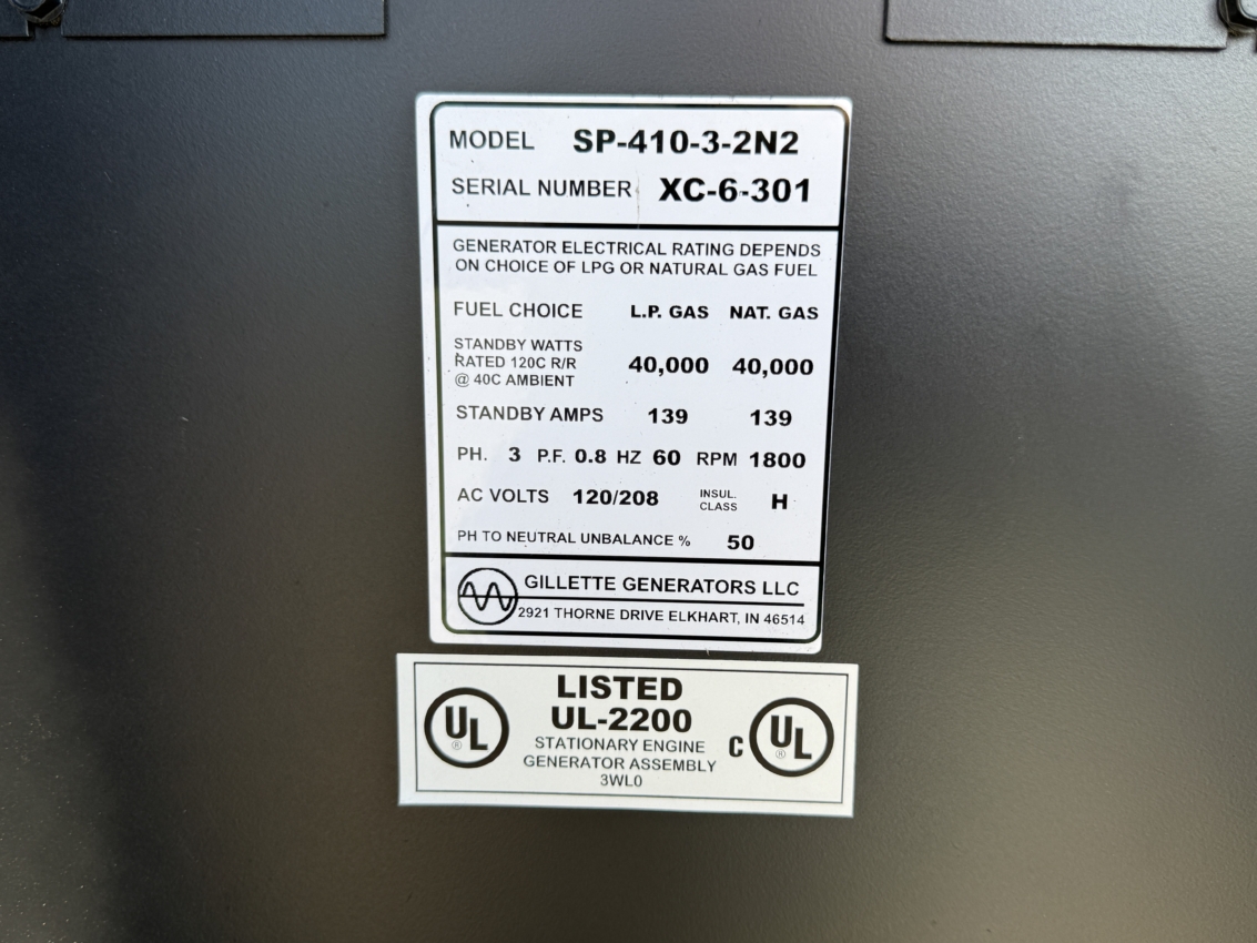 Gillette SP-410-1-1 Natural Gas Generator Set - 40 kW