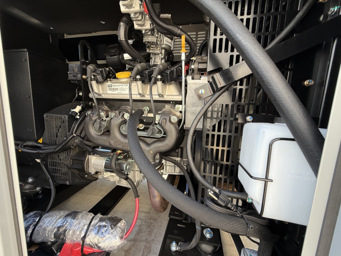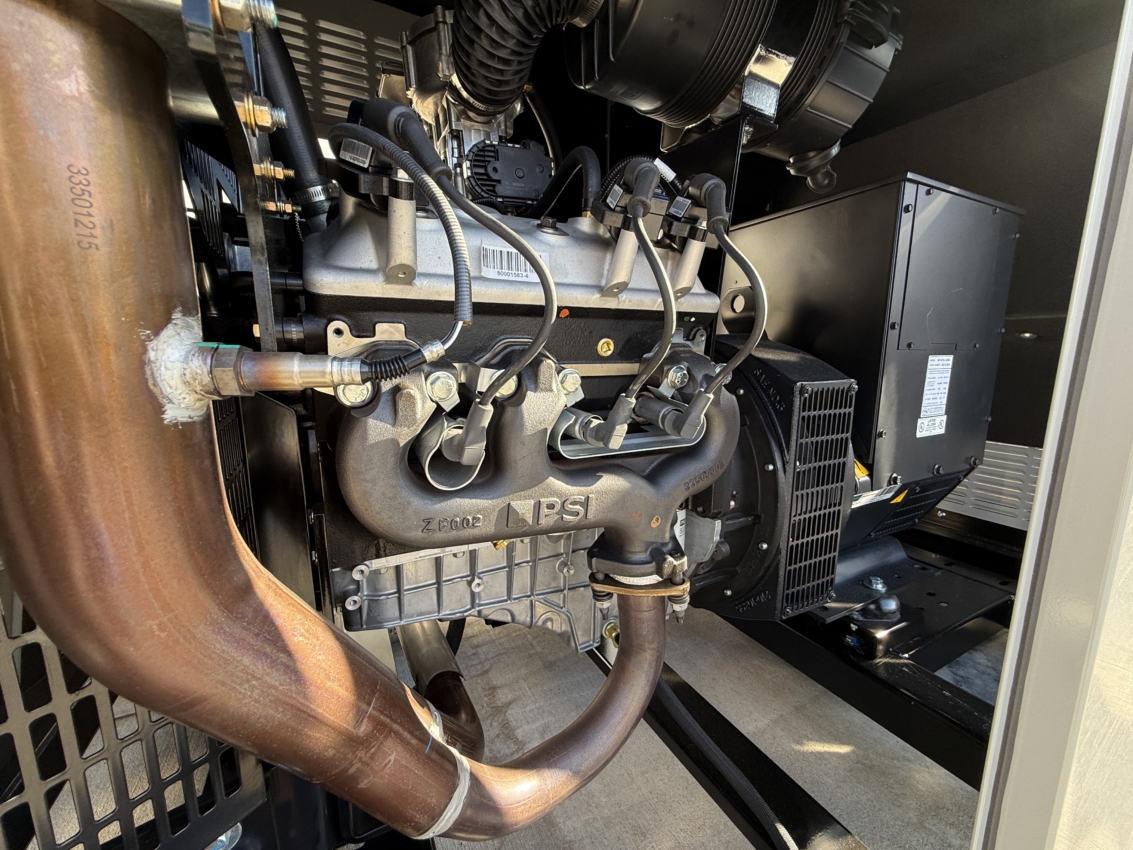 Engine Manufacturer: PSI Engine Model: Ind. Power Train, 4.3L, 4 cycle Engine S/N: 0051760 Engine RPM: 1800 Engine HP: 62 Governor: Electronic Starter: Electric Cooling Method: Radiator Compression Ratio: 9.05:1 Jacket Water Heater: ✓ Battery Charger: ✓ Battery Rack: ✓ Battery Cables: ✓ Charging Alternator: ✓ Emergency Stop: ✓ Exhaust Silencer (Mounted): ✓ Oxidation Catalyst: ✓ Air Fuel Ratio Controller: ✓