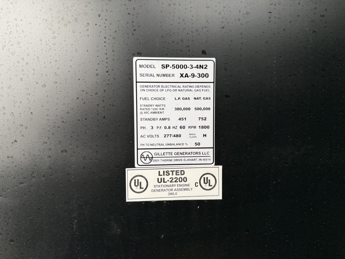 Gillette SP-5000-3-4N2 Natural Gas Generator Set - 500 kW