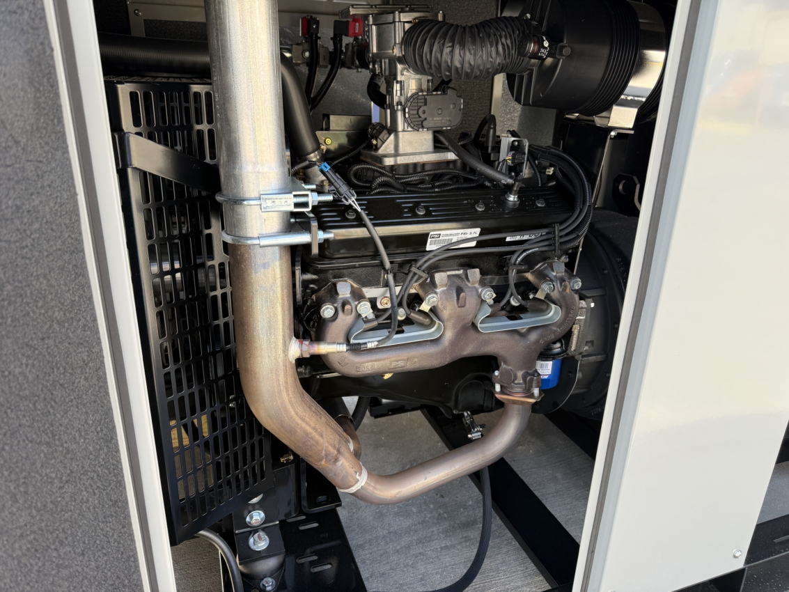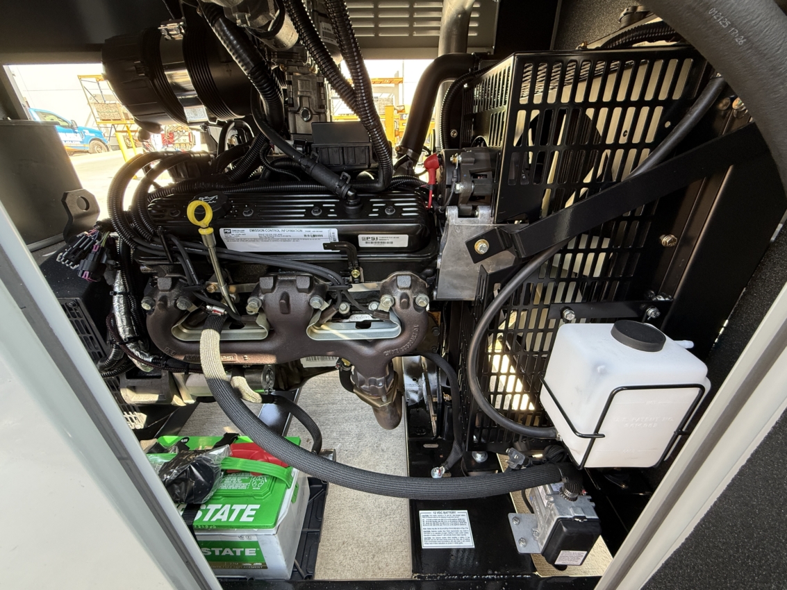 Engine Manufacturer: PSI Engine Model: PSI-5.7L Engine S/N: 57L0026372 Engine RPM: 1800 Engine HP: 100 Governor: Electronic Starter: Electric Cooling Method: Radiator Compression Ratio: 9.1:1 Jacket Water Heater: ✓ Battery Charger: ✓ Battery Rack: ✓ Battery Cables: ✓ Charging Alternator: ✓ Fuel Shut Off Solenoid: ✓ Exhaust Silencer (Mounted): ✓ Oxidation Catalyst: ✓ Air Fuel Ratio Controller: ✓