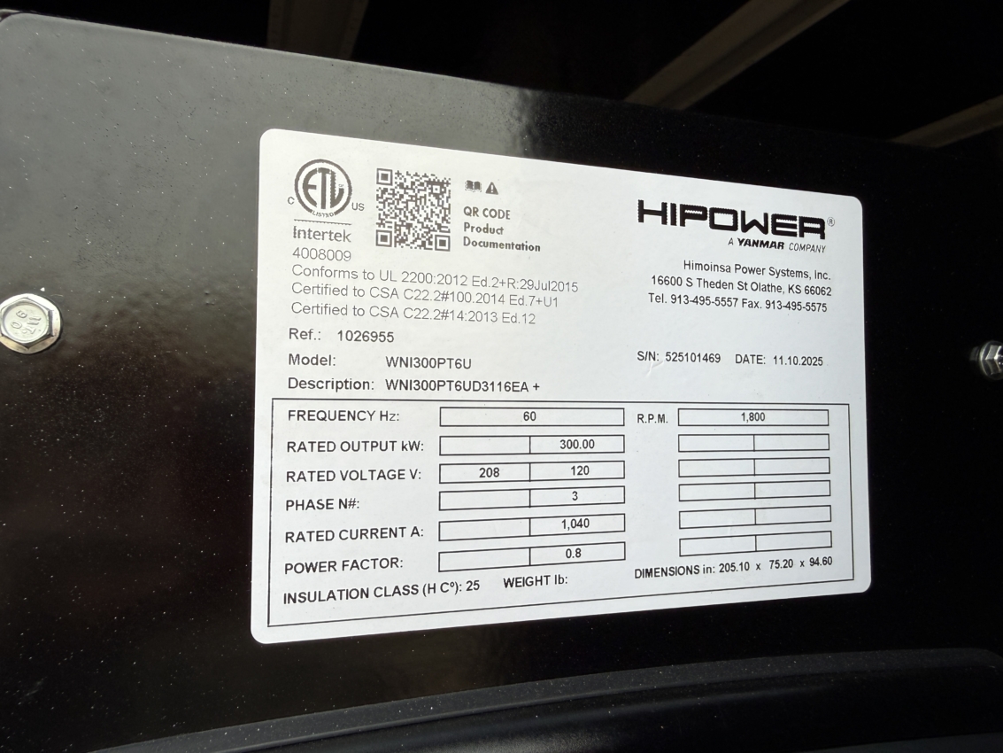 HIPOWER HNI-300 T6U Generator Set - 300 kW