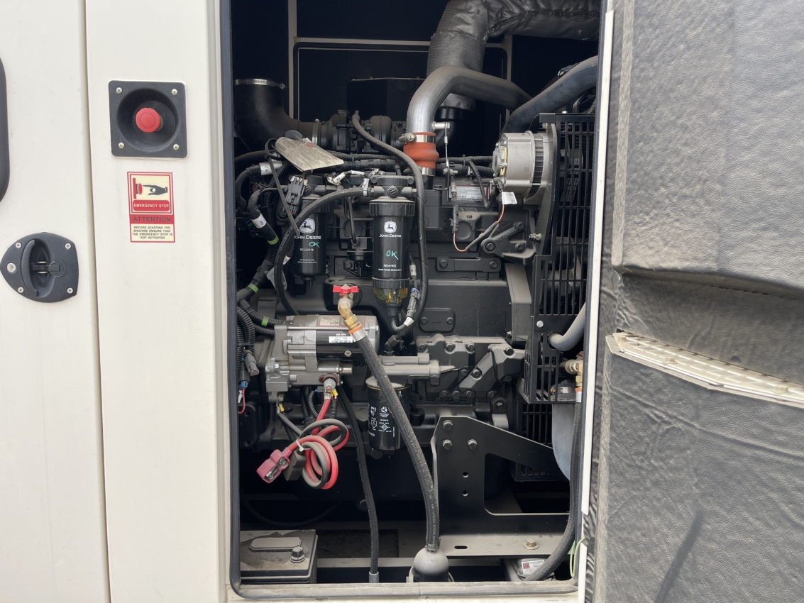 Engine Manufacturer: John Deere Engine Model: 4045HF285 Engine S/N: PE4045N035757 Engine RPM: 1800 Engine HP: 216 Governor: Electronic Cooling Method: Radiator Compression Ratio: 19.0:1 Emissions Rating: Tier 3 Jacket Water Heater: ✓ Battery Charger: ✓ Battery Rack: ✓ Battery Cables: ✓ Emergency Stop: ✓