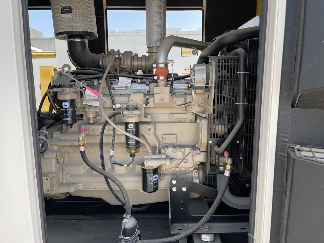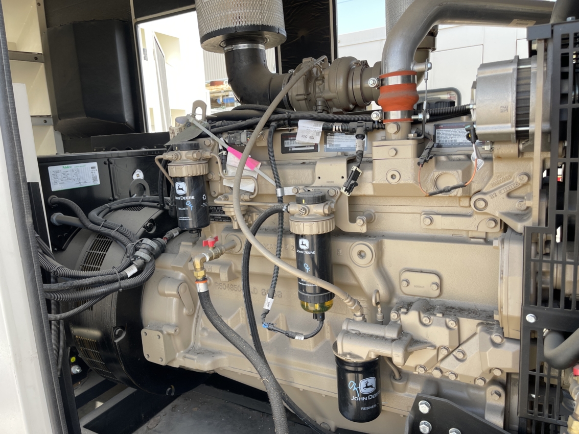 Engine Manufacturer: John Deere Engine Model: 6068HF285 Engine S/N: PE6068N021181 Engine RPM: 1800 Engine HP: 216 Governor: Electronic Cooling Method: Radiator Compression Ratio: 19.0:1 Emissions Rating: Tier 3 Jacket Water Heater: ✓ Battery Charger: ✓ Battery Rack: ✓ Battery Cables: ✓ Emergency Stop: ✓